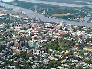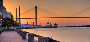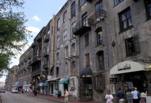 Savannah, Georgia is located inland from the Atlantic ocean about 15 miles and is bordered on the north by the Savannah River and is considered an important Atlantic seaport. The Savannah River divides Georgia from South Carolina.